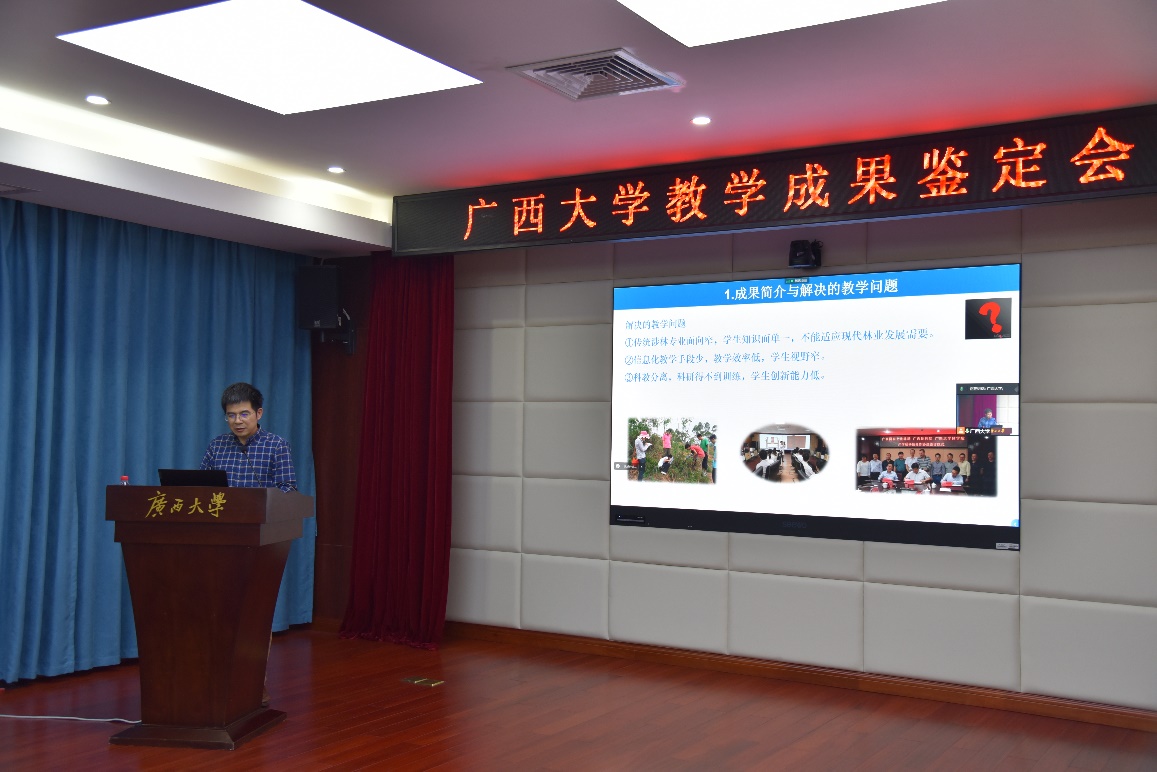 鉴定会上,成果负责人符韵林教授围绕《学科交叉·数字教学·科教融合:地方综合大学新林科人才培养模式探索与实践》教学成果的研究背景、教学问题、解决思路、成果创新、推广成效等方面进行了汇报。