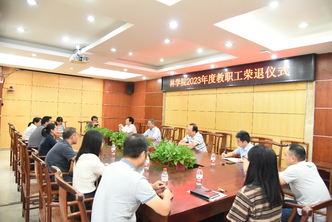 荣退教职工和太平、潘晓芳两位教授深情回顾在校工作经历,表达了对学院的眷恋、难舍之情,表示退休后将一如既往地支持学院的建设和发展,发挥余热、贡献力量。