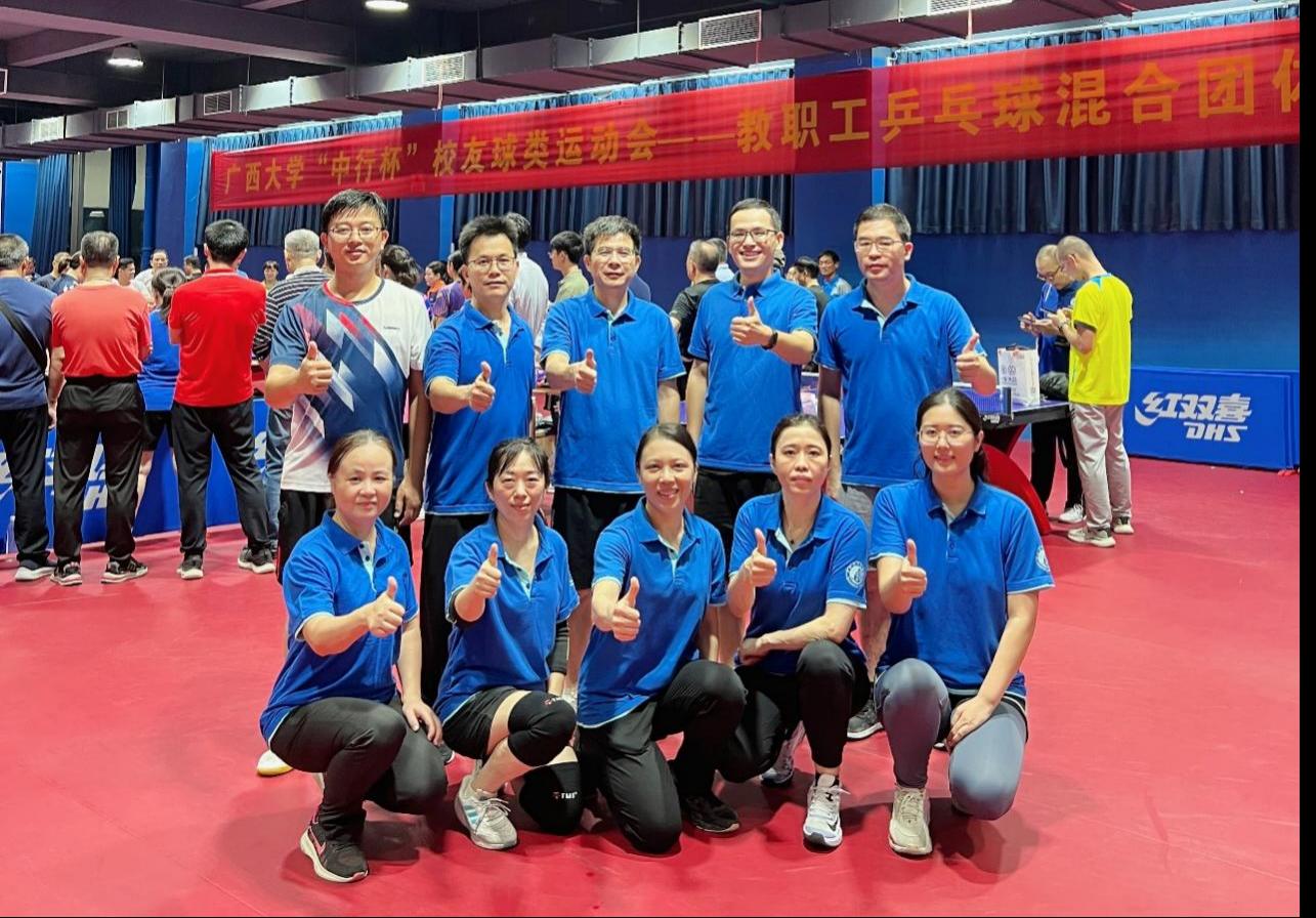 11月6日-9日,广西大学“中行杯”校友球类运动会——教职工乒乓球混合团体比赛在东校园体育馆举行,经过四天紧张激烈的比赛,我院教职工获得了团体(乙级组)季军。