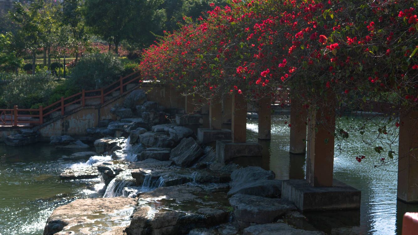 那考河湿地公园清澈的河水倒映着岸边的绿树,鱼翔浅底,水鸟嬉戏,这幅生机盎然的图景,诉说着南宁沂水而居的美好生活。活动中,罗应华、尤业明两位老师根据那考河湿地公园观景路线图,以湿地植物、湿地设施为切入点进行了详细的讲解,使同学们深入学习了矮生苦草、泽泻、金钱草、美人蕉、睡莲等沿边湿地景观植物的生态特性、生存环境、保护措施等专业知识。罗应华老师还向同学们讲解净水梯田的原理,并介绍了“海绵城市”的建设理念、那考河湿地公园中应用的污水治理体系,沿着那考河湿地公园栈道逐级而下,一侧是独具特色的“净水梯田”,另一侧是草木葱茏的湿地花田。从净水厂出来的水,先后流经梯田、湿地、水塘,最后才汇入那考河。