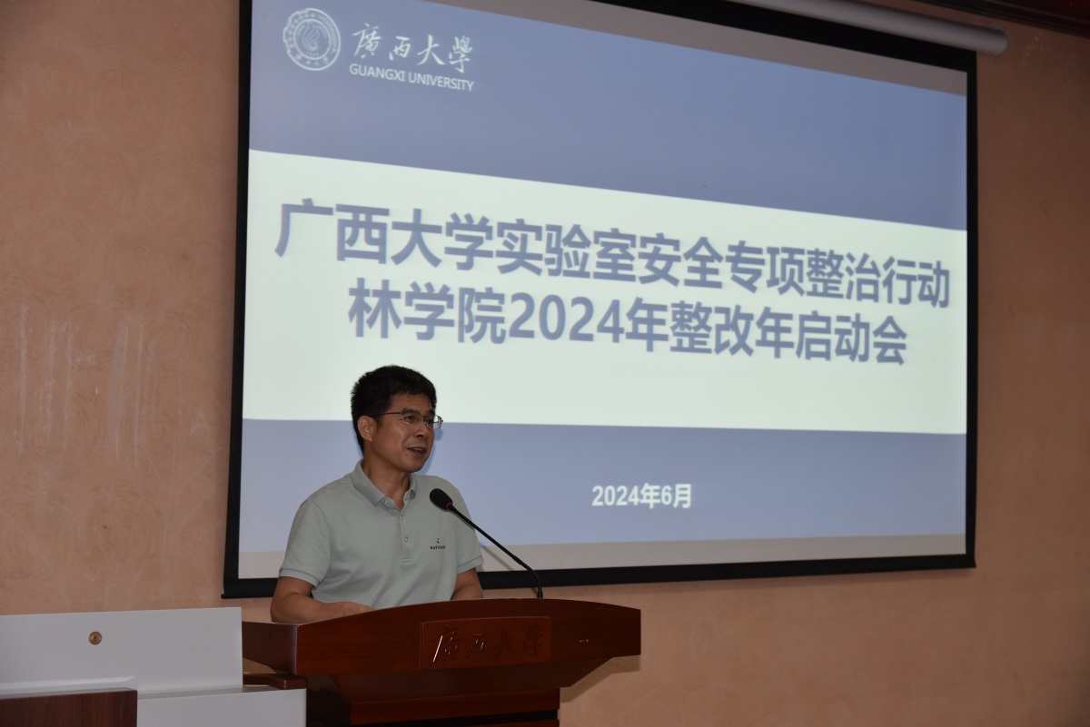 6月7日下午,我院在112报告厅召开广西大学实验室安全专项整治行动林学院2024年整改年启动会。院党委书记符韵林主持会议。院领导徐丽、梁俊波、招礼军、尤业明出席会议。学院全体教职工参加会议。