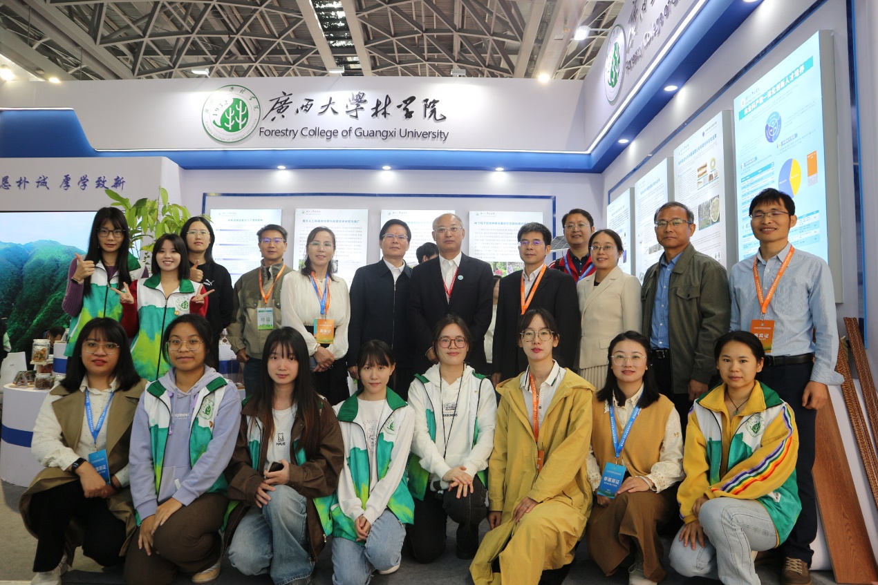 我院受邀参展并携带了一系列绿色生态可持续助力乡村振兴的优质产品,充分展示我院在亚热带特色林木育种、人工林高效培育与经营、珍贵树种培育、林下经济、森林病虫害绿色防控、森林资源机载激光雷达监测、木材高值化加工与利用等领域的科研与技术转化成果。在D9馆T4号展位,学院精心设置了“林下经济产品”、“沉香结香技术及其制品”、“病虫害防治及其利用”、“优良珍贵树种选育与高效栽培技术研究”等多个特色展区,并展示了林业调查无人机、多用途激光雷达等尖端设备,吸引了大量参展人员驻足观看和咨询。这些展区不仅展示了学院在乡村振兴领域的突出贡献,还彰显了我院在人才培养、科研服务、校企合作等方面的深厚底蕴和丰硕成果。中国工程院刘世荣院士、福建农林大学林庆藩副校长、广西大学冯家勋副校长到展区调研指导时,对我院取得的丰硕成果给予高度评价,并寄语未来继续广泛开展产学研用相结合,强化技术研发与转化,为林业产业高质量发展贡献科技力量。