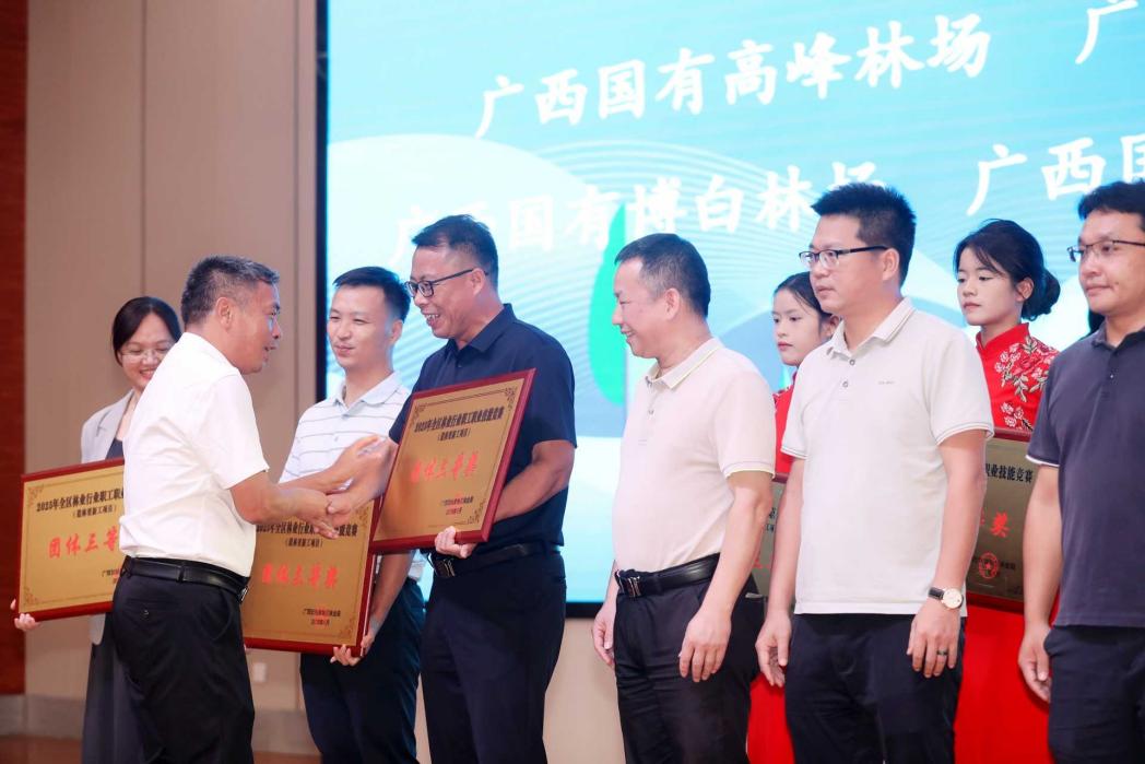 6月17日下午闭幕式上,裁判长宣布竞赛成绩,现场颁发个人及团体一、二、三等奖。自治区林业局总工程师施福军总结指出,赛事筹备充分、执裁公正,23支队伍展现出“精湛技能与良好风貌”,成功在全区林业系统掀起“学技术、练本领”热潮。广西大学林学院王凌晖教授表示“以赛促培、以赛强能,学院将持续深化产教融合,为林业人才搭建成长阶梯。”此次赛事的圆满收官,不仅是广西林业技能人才培养成果的集中展示,更标志着广西大学林学院在推动林业高质量发展中迈出坚实一步。值得关注的是,本次赛事还特别表彰了优秀裁判、领队及组织单位。广西大学林学院荣获“突出贡献奖”,王凌晖教授凭借专业严谨的执裁态度与丰富的行业经验,荣获“优秀裁判员”称号,成为高校教师深度参与行业赛事的典范。