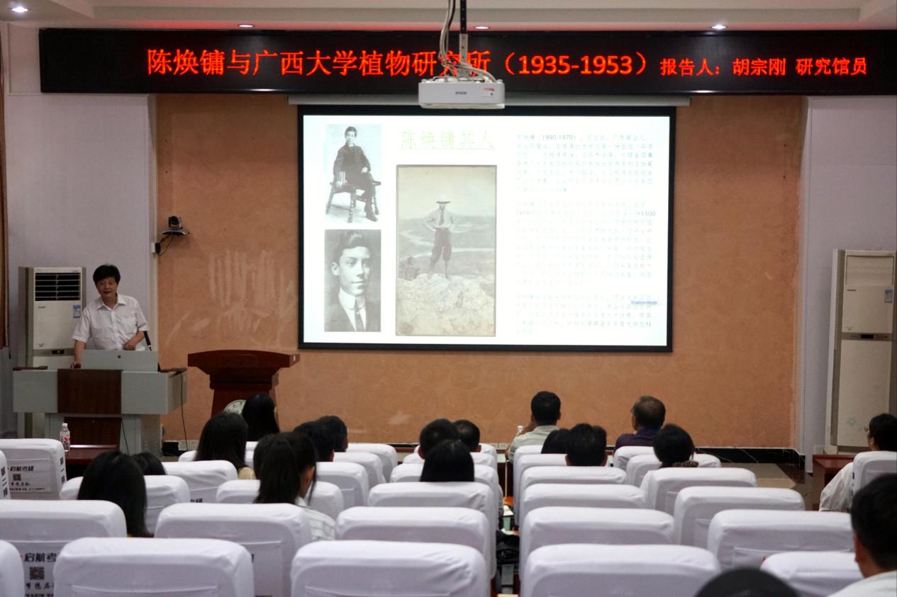 中国科学院庐山植物园胡宗刚研究馆员应邀担任主讲嘉宾,为师生带来题为《陈焕镛与广西大学植物研究所(1935-1953)》的学术报告。学术报告由招礼军副院长主持,广西大学、南宁植物园、广西森林生态监测中心、广西科学院、广西药用植物园、广西中医药研究院等单位的近百名专家学者和师生代表参与活动。