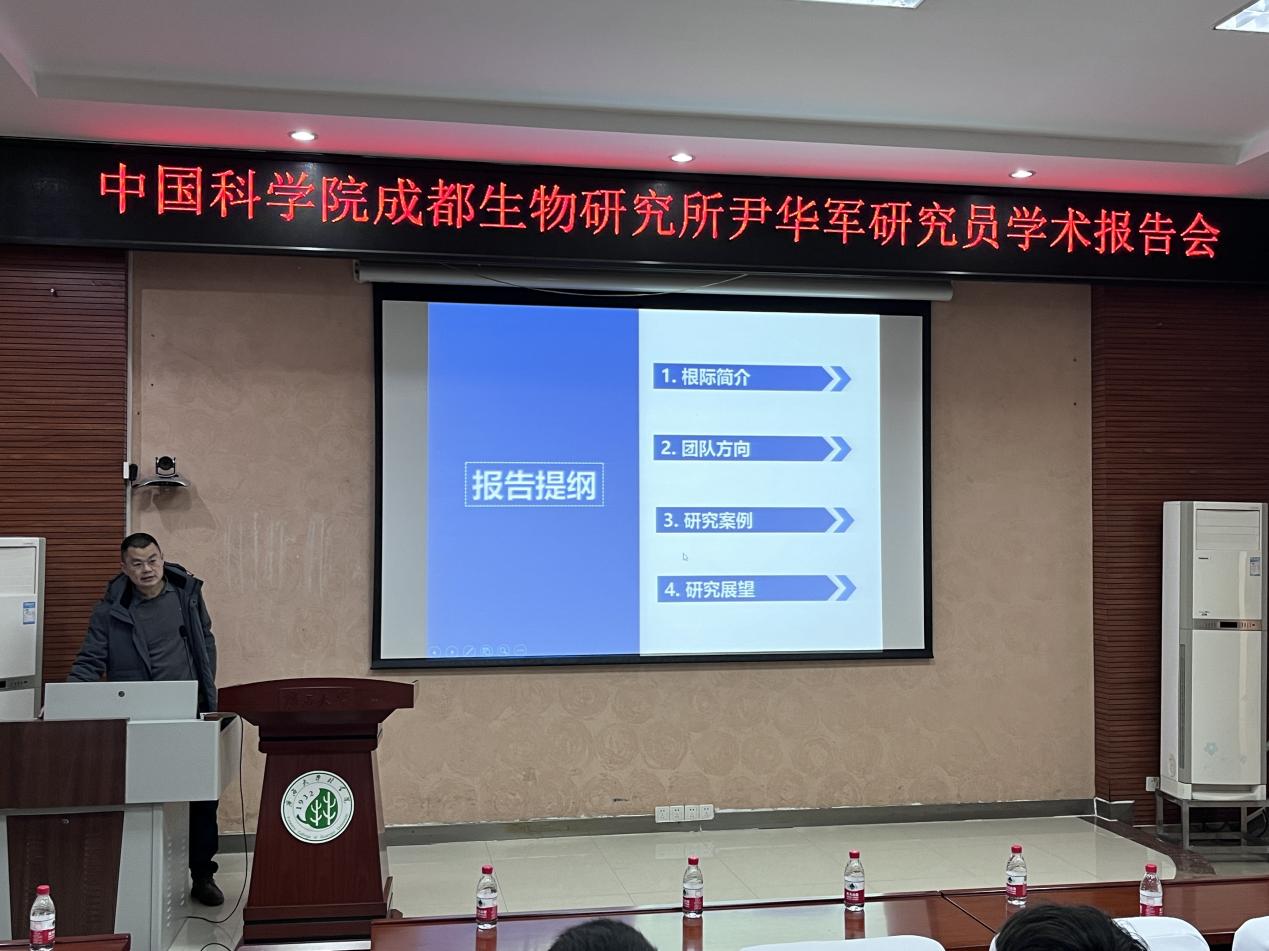 2023年12月24日至25日,中国科学院成都生物研究所尹华军研究员受邀到我院开展学术交流活动,并作了题为“高寒森林根际生态过程研究”的学术报告。本次学术报告会由我院副院长尤业明老师主持,学院相关教师、研究生和本科生共计100余人聆听了学术报告。