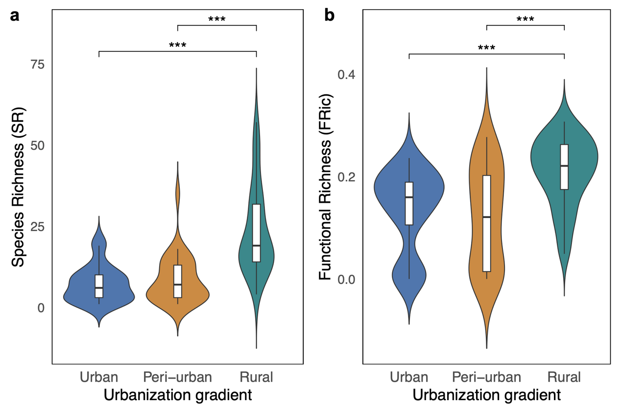 大型真菌分类和功能α多样性在城市化梯度上的变化