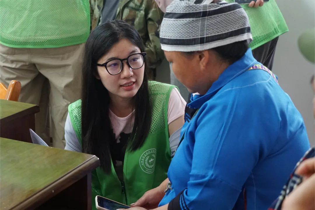 实践团成员与腰马村八角种植户进行一对一的交流调研