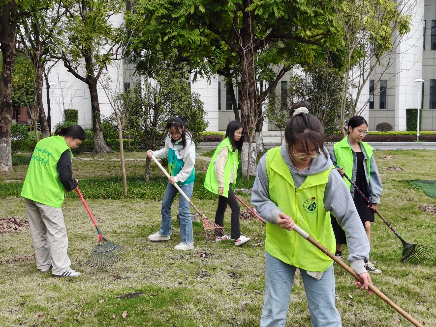 随后,党员们来到汇学堂西侧草地。在学校后勤基建处、博世科物业服务中心绿化技术人员的指导下,党员们纷纷扛起锄头,拿着铁铲,进行落叶清扫、杂草清除、松土施肥等工作。经过一个多小时的努力,整片绿地愈发整洁美观,为校园春色增添生机。