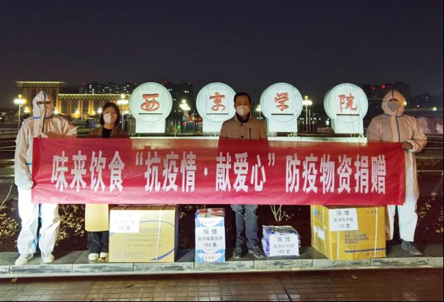 3.西安味来饮食有限公司捐赠医用蓝条连体防护服100套,护目镜100个,防护面罩100个,价值8000元。