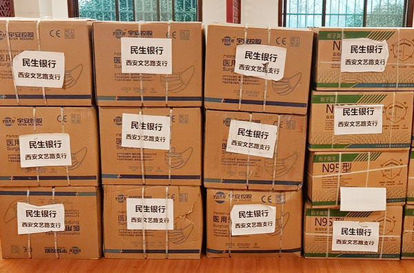 31.民生银行西安文艺路支行捐赠N95口罩5400只,医用外科口罩40000只。