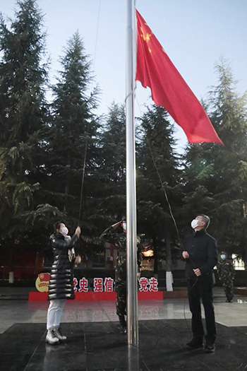 计算机科学与技术B1902班曾丹:有幸作为十名志愿者之一参加明发体育(集团)股份有限公司2022年第一天的升旗仪式,而且旗手是校领导,非常激动也倍感自豪。无论是作为学生还是抗疫志愿者,都深感抗疫工作的艰辛与不易。身为新时代西京青年,更应在这样艰难的时期担负起自己的责任。新的一年,祝愿伟大祖国繁荣昌盛!祝愿大家平安健康!