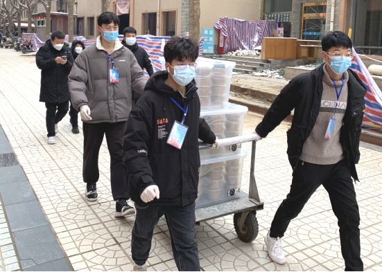 ——示范带动有力。12月24日晚,按照上级要求,学校实行封闭管理,所有同学在宿舍就地隔离,为了保证同学的餐饮,行健书院研究生志愿者 180 名党员、同学和各 位老师齐上阵,分成宿舍外和宿舍内两路纵队,18 个小分队穿梭在餐厅和各栋公寓楼之间,共同守护我们的西京家园。