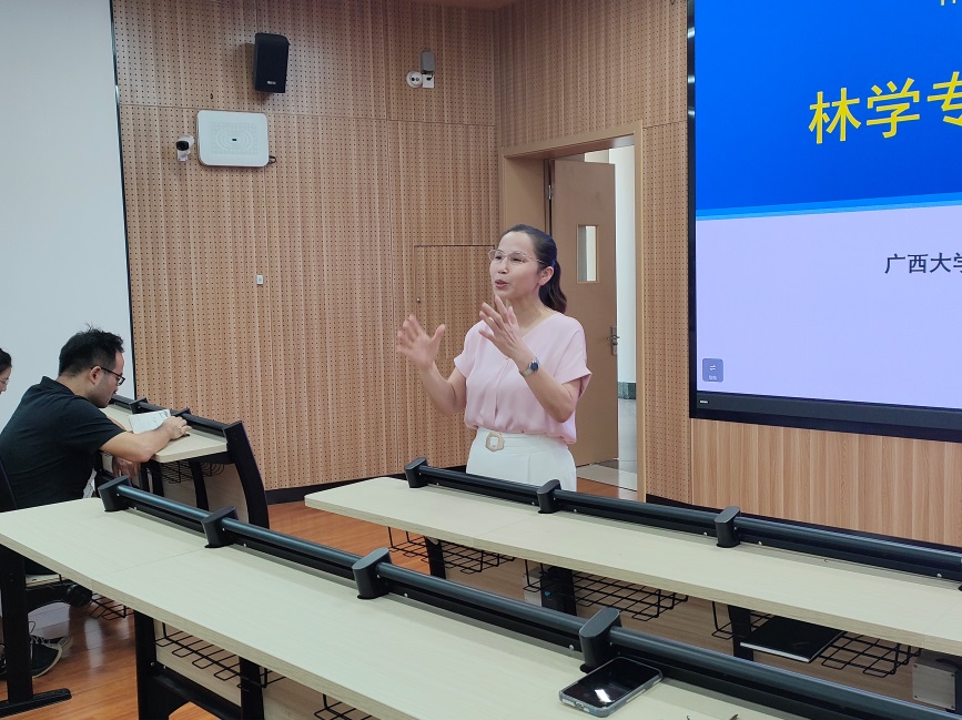 程飞老师首先向2023级林学专业新生们介绍了此次活动的目的,是要搭建教师和学生之间的交流平台,通过引导学生尽早参与科研工作,促进学生的创新和实践能力培养。接下来,由莅临现场的林学专业教师们向林学新生介绍了各自的研究方向。学院副院长杨梅教授激励同学们要加强与老师、学长学姐之间的沟通交流,增进学生之间的感情,不断加强自身综合素质。杨振德教授和徐增富教授建议同学们先到各个实验室了解情况,看看当前老师们都在做什么研究,有哪些有趣的地方,最后根据自己的兴趣再决定自己加入哪个实验室。